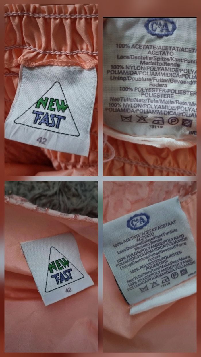 Une magnifique robe rose à motifs fleurs brodée avec un bolero assorti, parfaite pour toutes les occasions. La robe est de taille 42 et de la marque New Fast C&A. Elle a un jupon intégré et des bretelles non réglables. Le dos est élastique pour plus de confort. Le bolero a des épaulettes et reste ouvert, mesurant 42 cm de long, 42 cm de large et 31 cm de manches. La robe mesure 87 cm de long sans les bretelles, 100 cm avec, 69 cm de large en bas et 35 cm de large à la poitrine, avec un dos de 47 cm. C'est une tenue élégante et féminine qui saura vous mettre en valeur !