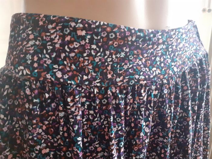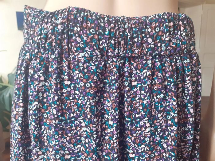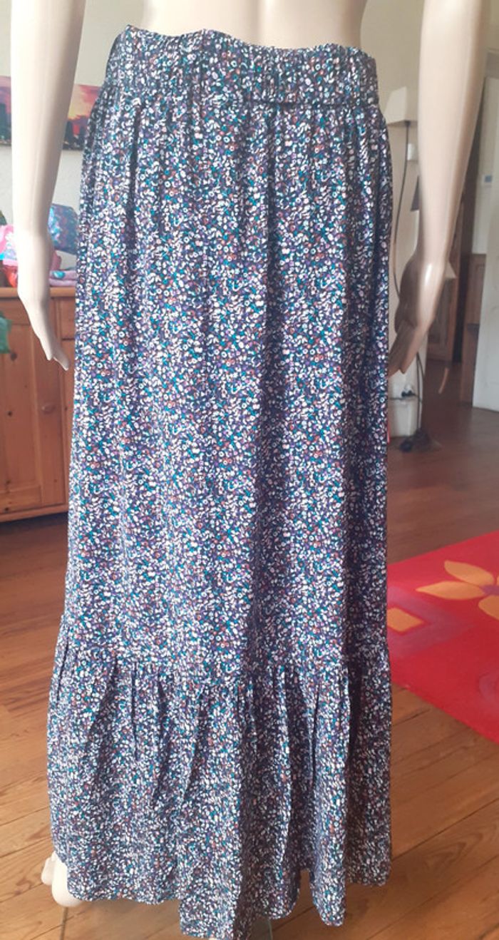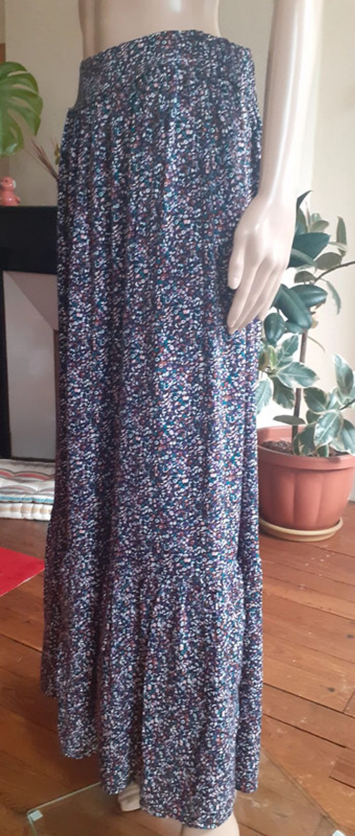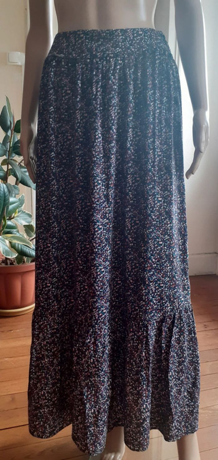 Jolie jupe longue Taille : 38 Composition : 100% Viscose Marque : Gémo Coloris : sur une base noire, motifs fleuris multicolores Taille légèrement élastiquée au verso de la jupe pour un ajustement parfait Etat impeccable #carlisle66femmetaille38