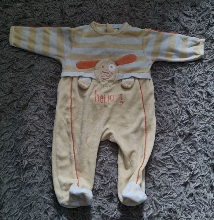 Grenouillère avec chien ,taille 6mois marque Nightwear tex,légère tache voir dernière photo.
