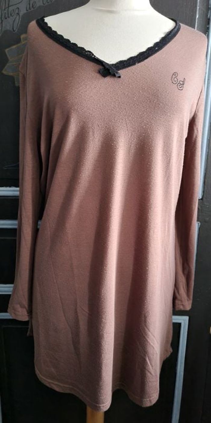 Robe de nuit marron manches longues taille XL - photo numéro 3