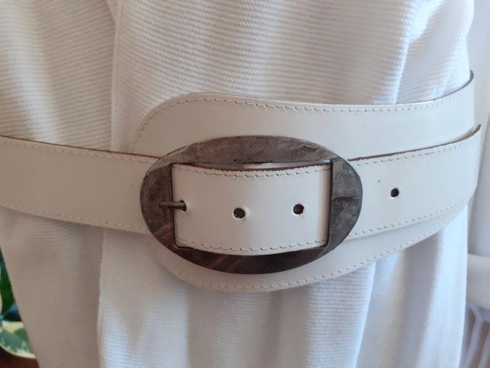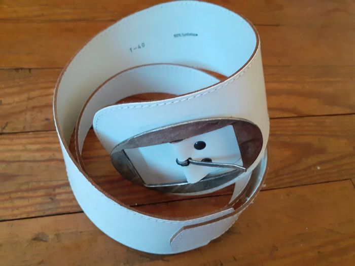 Jolie ceinture Coloris : Blanc 100% Sunthétique Longueur : 85 cms Largeur : 6 cms Boucle argentée Etat impeccable #carlisle66ceinture