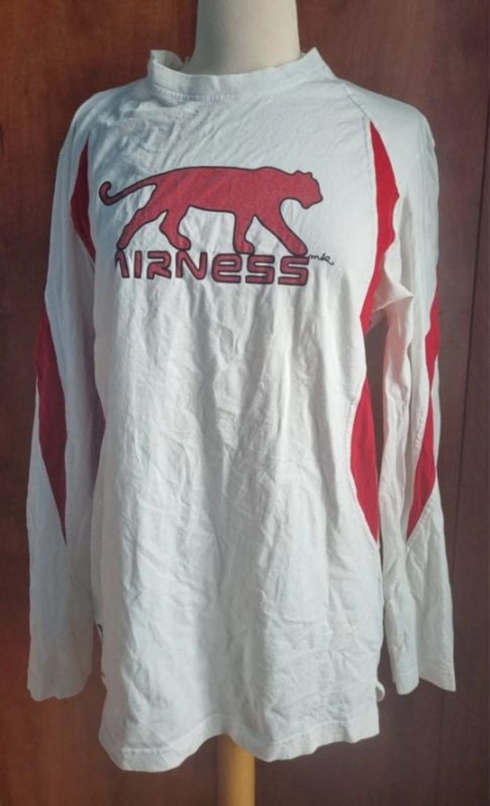 T-shirt à manches longues, taille XL marque Airness,longueur 74cm, largeur 52cm, longueur épaule à aisselle 24cm, largeur aisselle à aisselle 52cm, longueur manche 64cm,légère taches sous les aisselles.