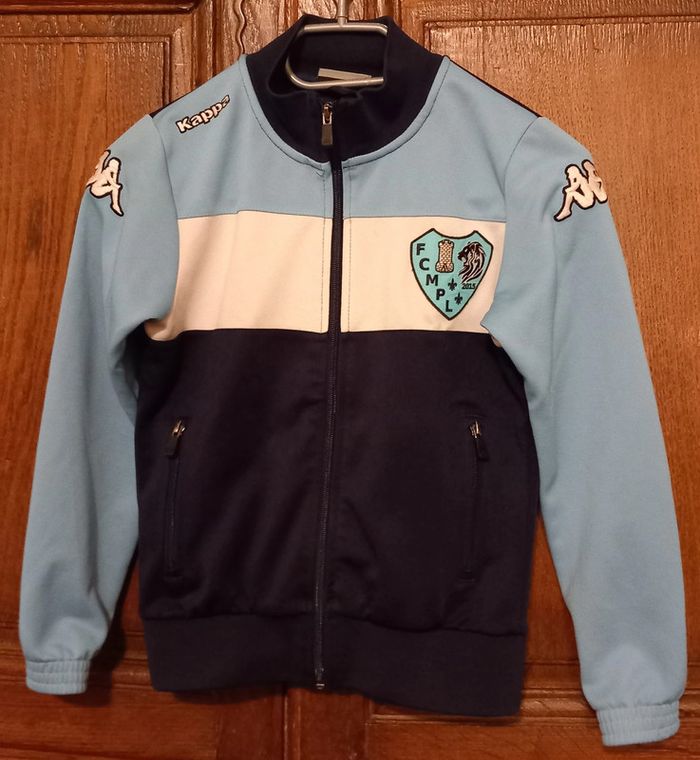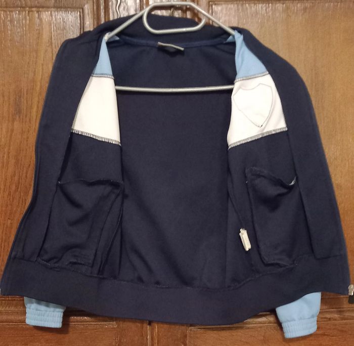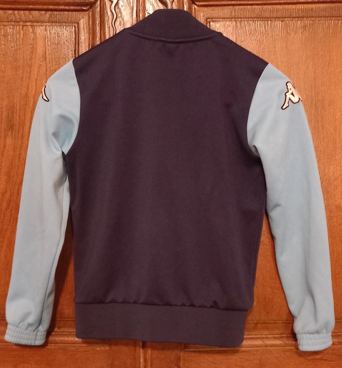 Très jolie veste de survêtement Marque : Kappa Coloris : Marine, Turquoise, Blanc Deux poches zippées à l'avant Taille : 10 ans Composition : 100% Polyester Etat impeccable #carlisle66garçon10ans
