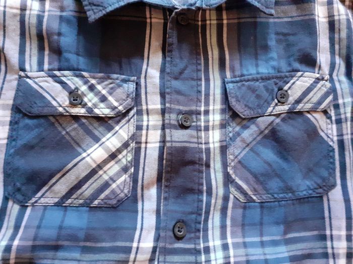 Jolie chemise, Coupe Regular Fit Taille : 14 ans/XS (158-164 cms) Deux poches plaquées sur le devant Manches longues Coloris : Bleu, Blanc Composition : 100% Coton Marque : Kiabi Etat impeccable #carlisle66garcon14ans