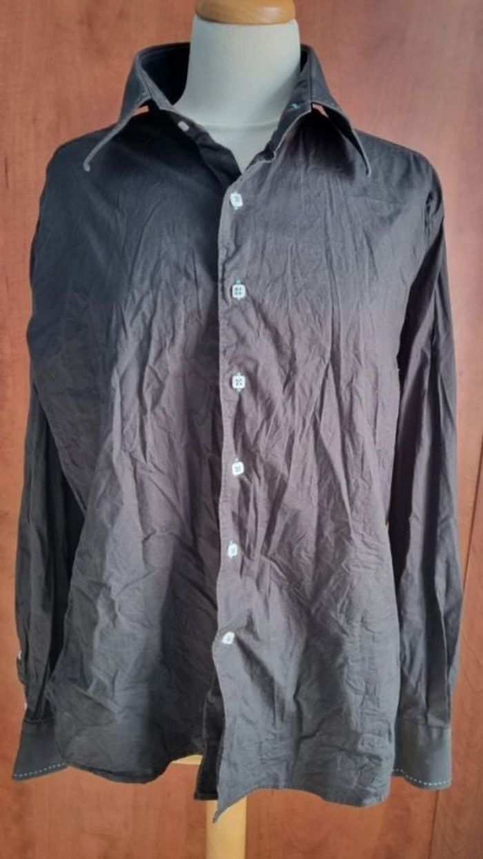 Chemise uni noir,taille 2xl marque Emmanuelle Khanh,longueur 65cm, largeur 60cm, longueur épaule à aisselle 20cm, largeur aisselle à aisselle 61cm, longueur manche 63cm.