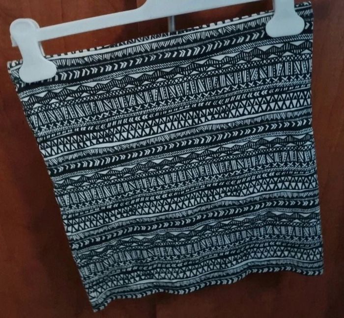 Jupe à motifs, taille XS marque Gémo, longueur 37cm, largeur de la taille 33cm jusqu'à 36cm, largeur 36cm.