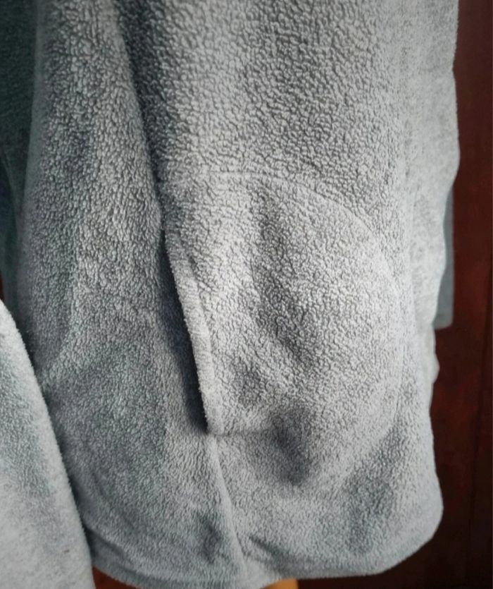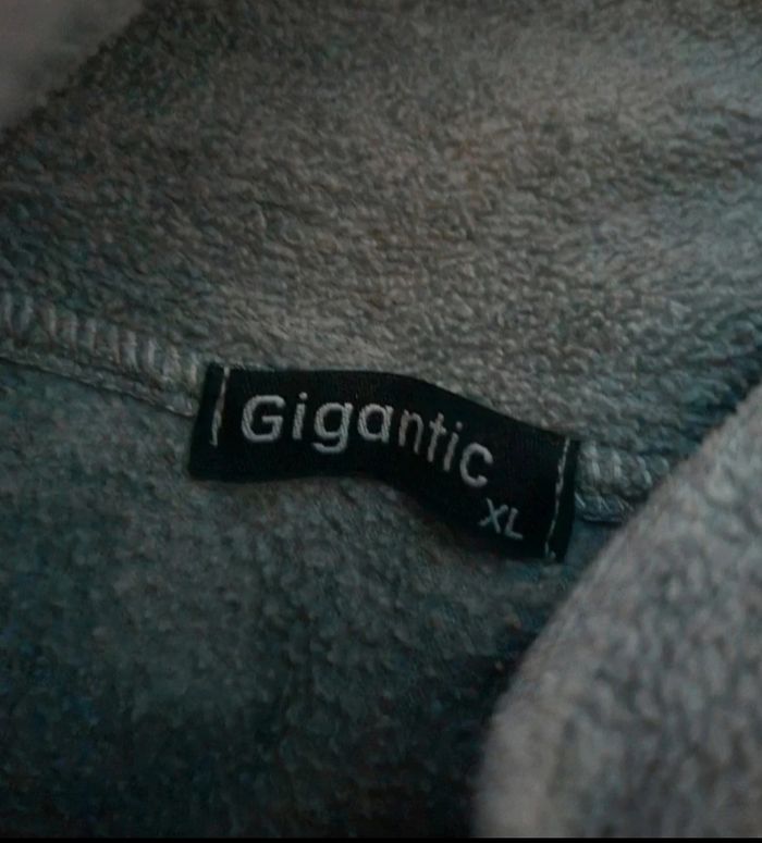 Pull d'hiver gris avec poches mixte, taille XL marque Gigantic,longueur 65cm, largeur 49cm, longueur épaule à aisselle 23cm, largeur aisselle à aisselle 52cm, longueur manche 59cm,léger défauts voir les 2 dernières photos.