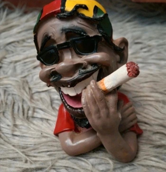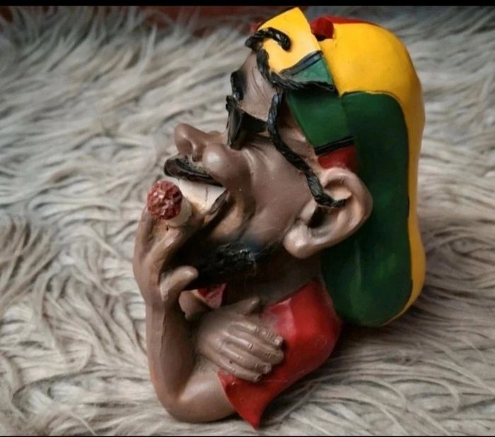 Tirelire rasta (humour),hauteur environ 12cm ,circonférence environ 31cm,léger défaut sur la lèvre.