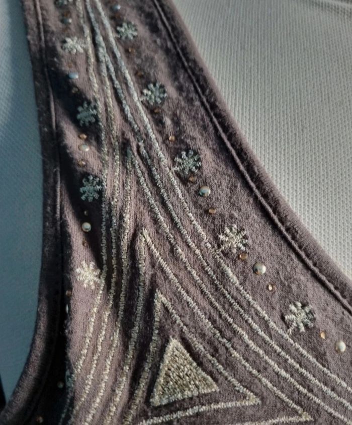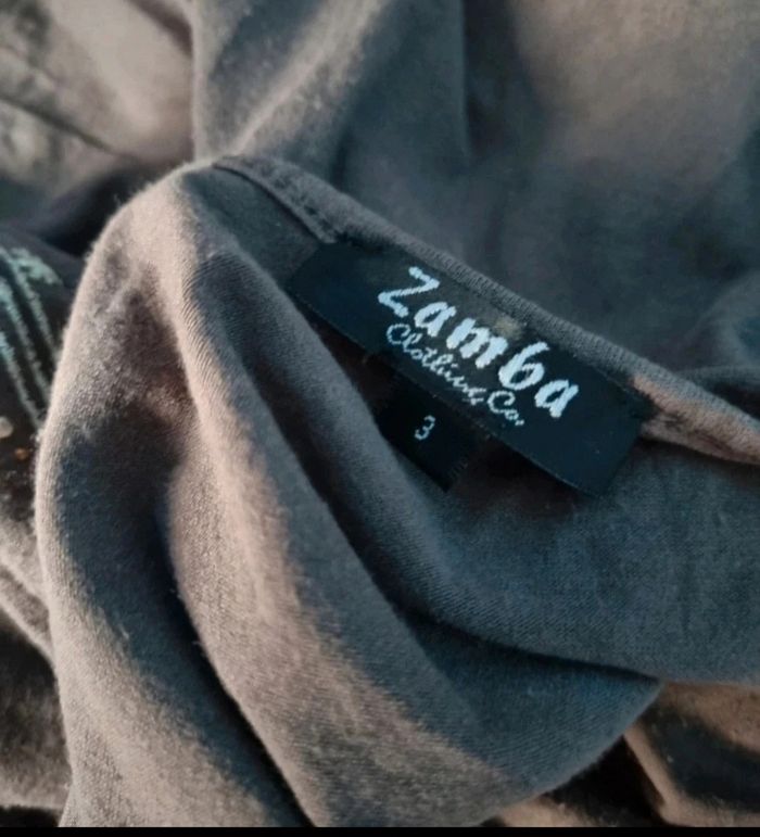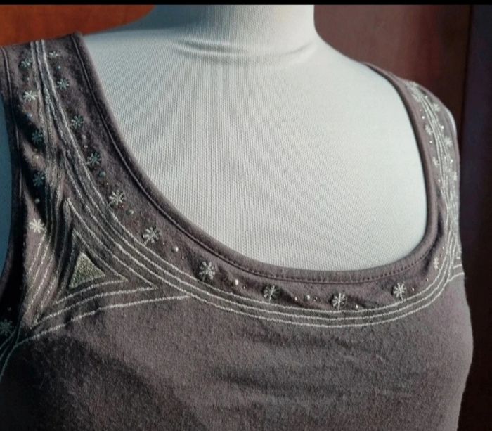 Débardeur marron ,taille 3 marque Zamba ,longueur 64cm, largeur 47cm, longueur épaule à aisselle 22cm, largeur aisselle à aisselle 47cm.