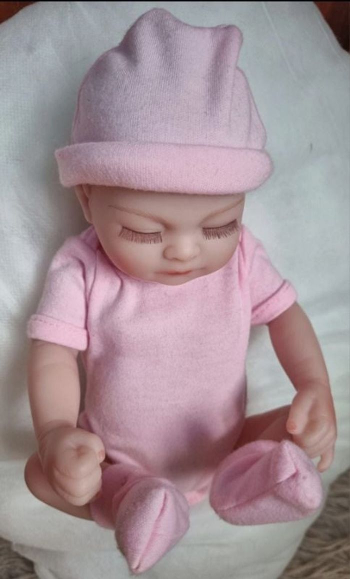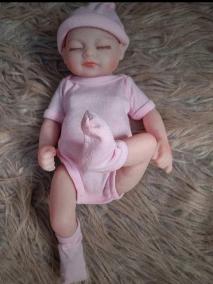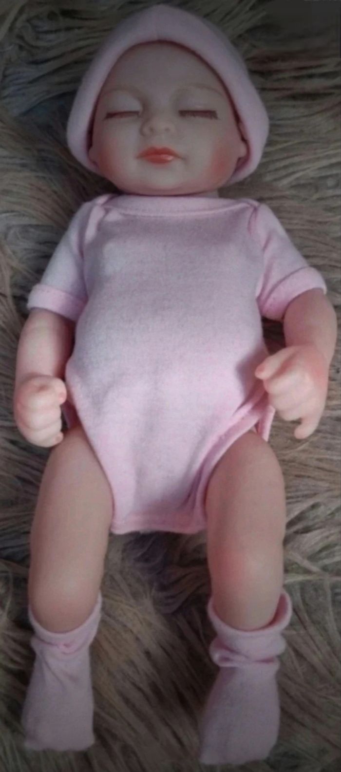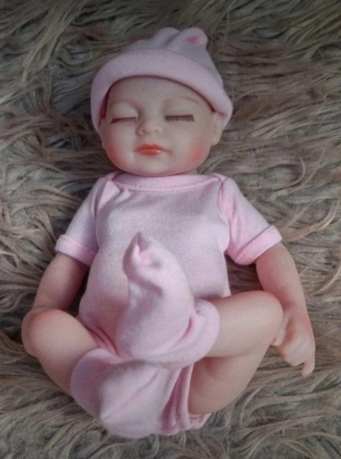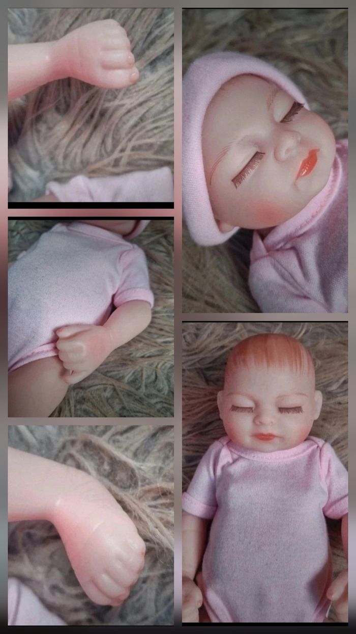 Adorable poupon bébé fille très réaliste, tout neuf et jamais utilisé laissée en décoration. Il s'agit d'une imitation de poupée reborn prématuré, avec un niveau de détail impressionnant. Le visage, les mains et les pieds sont délicatement sculptés pour donner l'impression d'un vrai bébé,bras et jambes articulé, mesure environ 33cm. Ce poupon est parfait pour les jeux de rôle. Il sera un compagnon idéal pour les petites filles qui rêvent d'avoir leur propre bébé à câliner😊.