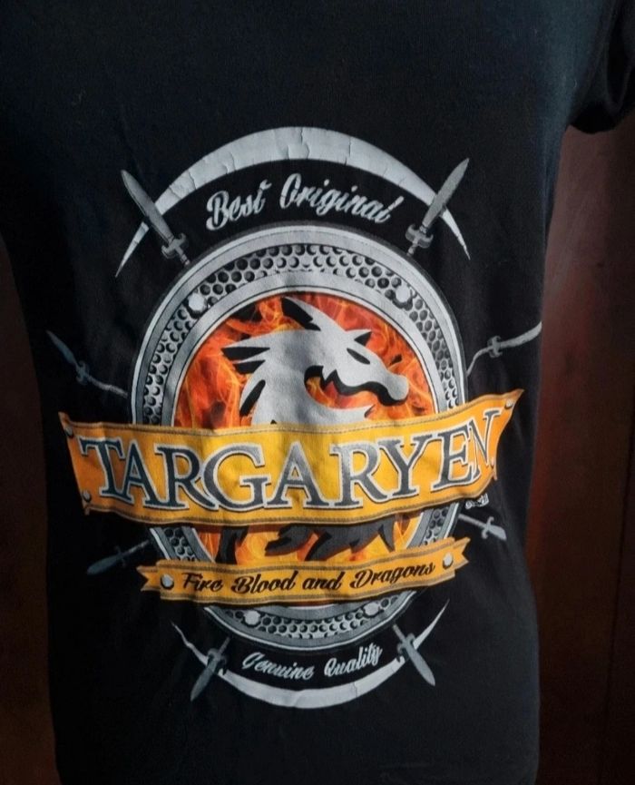 T-shirt noir avec imprimé (style mortal kombat),marque Roly taille L mais convient à S-M, longueur 60cm, largeur 44cm, longueur épaule à aisselle 17cm, largeur aisselle à aisselle 46cm,imprimé légèrement craquelé.
