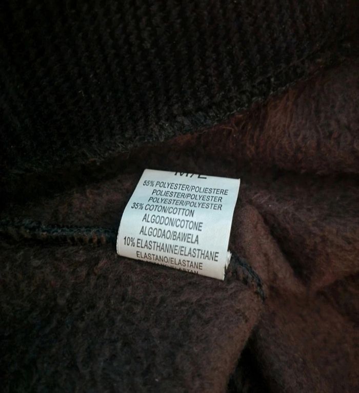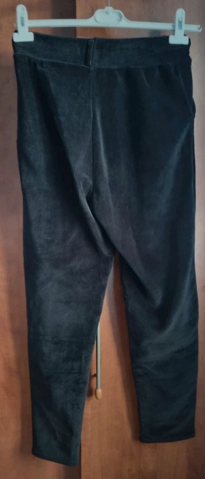 Pantalon noir doux et chaud (intérieur et extérieur),2 poches, élastique à la taille possible de mettre une ceinture ,taille M-L, longueur 100cm, largeur de la taille 38cm jusqu'à 40cm, largeur cuisse 28cm, largeur cheville 13cm.