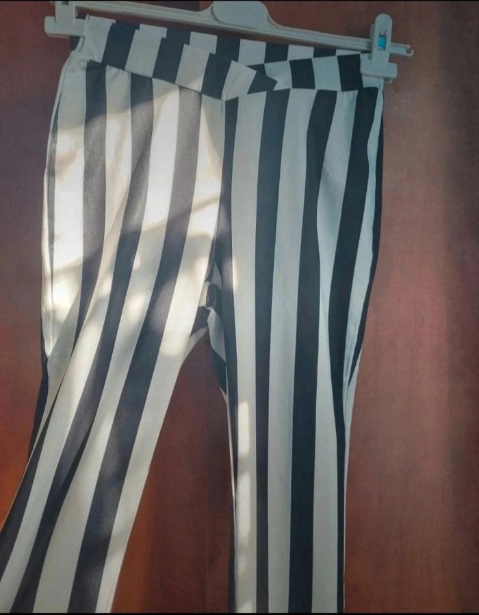 Pantalon rayé taille 34, longueur 90cm, largeur de la taille 34cm,largeur cuisse 23cm, largeur cheville 11cm.