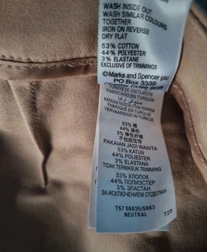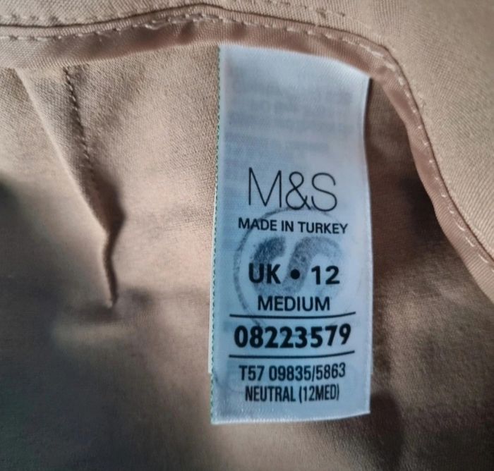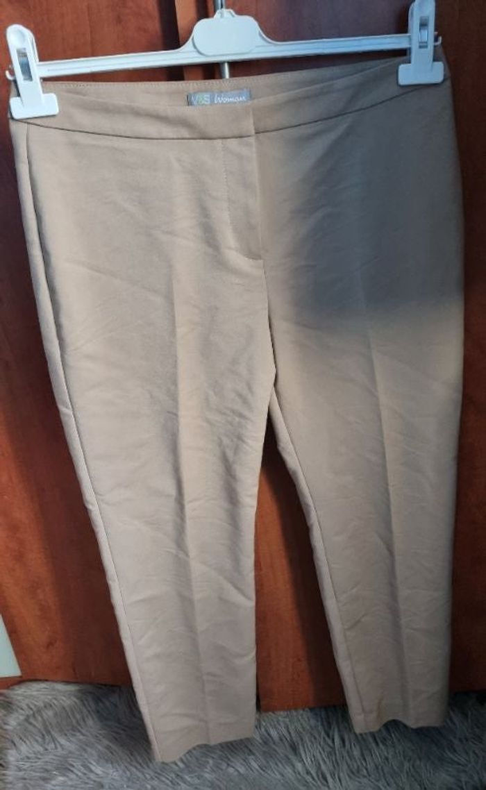Pantalon beige, taille 12 (40FR) marque M&S Woman,longueur 84cm, largeur de la taille 40cm, largeur cuisse 27cm, largeur cheville 17cm.