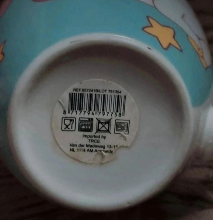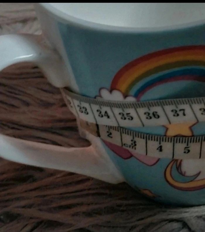 Grande tasse turquoise avec licorne, mesures en photos.