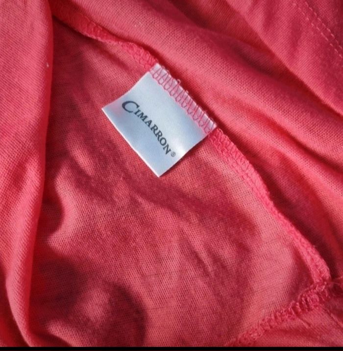 Long débardeur rose, taille 38-40 marque Cimarron,longueur 78cm, largeur 46cm, longueur épaule à aisselle 20cm, largeur aisselle à aisselle 47cm.