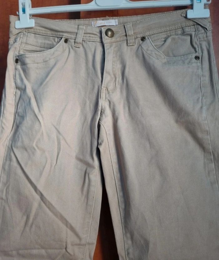 Jean beige, taille 40 marque Casual by Gemo, longueur 86cm, largeur de la taille 40cm, largeur cuisse 24cm, largeur cheville 14cm.