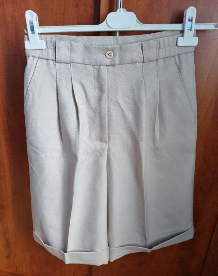 Short crème taille 38 avec culotte de protection, longueur 55cm, largeur de la taille 35cm, largeur cuisse 31cm, largeur genou 29cm.