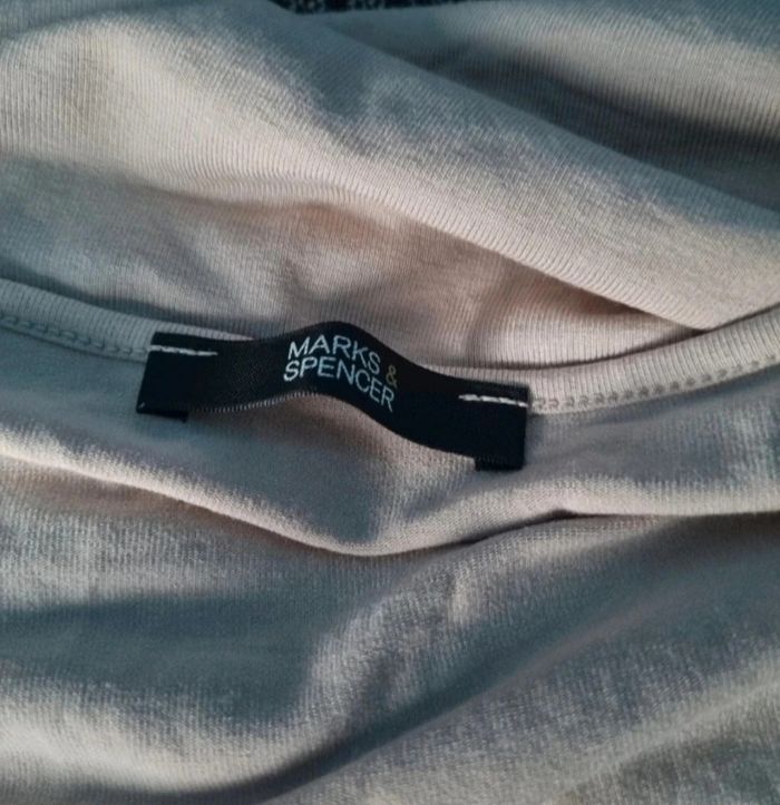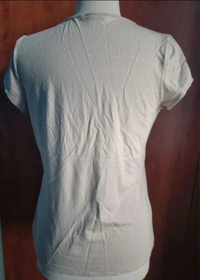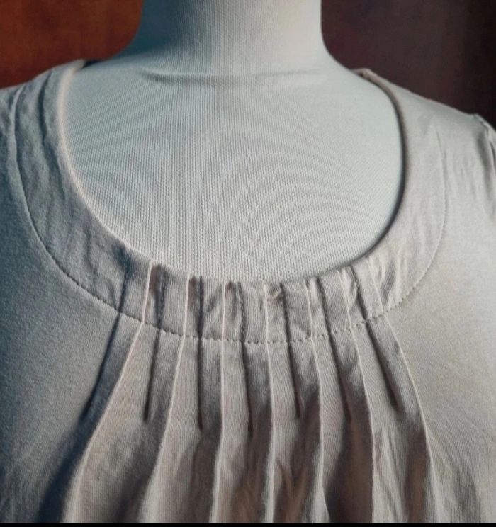 T-shirt crème, taille 12 (40FR) marque Marks&Spencer, longueur 59cm, largeur 50cm, longueur épaule à aisselle 16cm, largeur aisselle à aisselle 46cm.