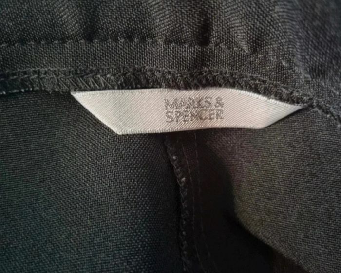 Pantalon noir taille 14 (42FR),marque Marks&Spencer,longueur 101cm, largeur de la taille 39cm, largeur cuisse 29cm, largeur cheville 17cm, comme neuf porté 1-2fois (légère tache voir dernière photo).