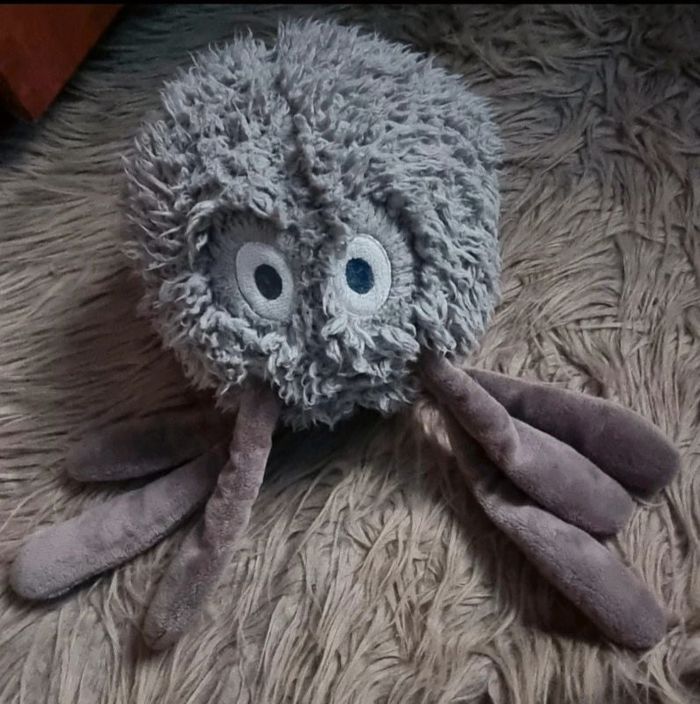 Pieuvre en peluche gris,très doux et mignon 😉,poile effet mouton, hauteur sans les tentacules environ 24cm, hauteur avec les tentacules environ 39cm, circonférence 56cm, manque légèrement quelques poile à certains endroits voir photos, sinon très bonne état.