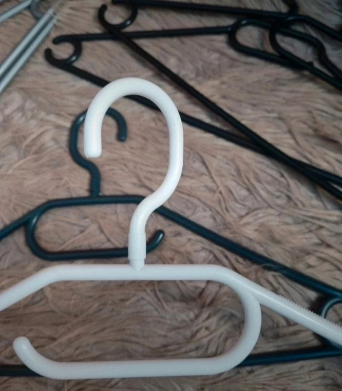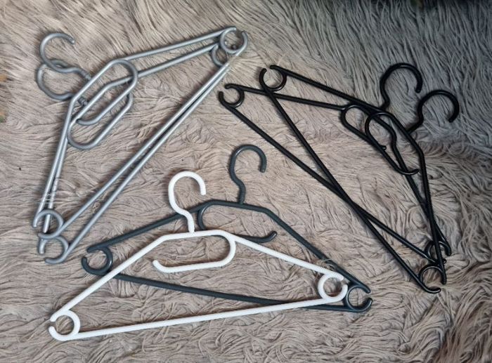 Lot 6 cintres adultes, 2 argenté, 2 noir ,1 blanc, 1 gris foncé, système de rotation.