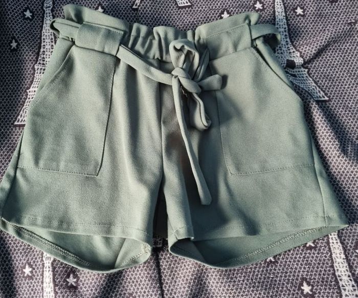Short kaki taille S,élastique à la taille, 2 poches, longueur 35cm, largeur de la taille 36cm jusqu'à 40cm, largeur cuisse 27cm.