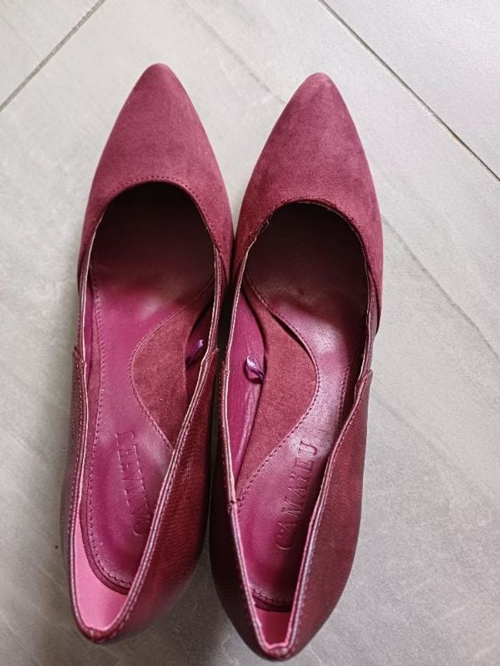 Jolie paire de talons couleur violine/bordeaux bi-matière simili cuir et daim Neuves avec étiquette, quelques points sont décousus sur le devant,d'origine, voir photo, mais rien de méchant Taille 39 Marque Camaïeu N'hésitez pas à me contacter pour plus de renseignements et à regarder mon dressing pour faire un lot