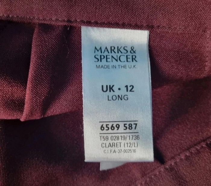 Pantalon violet taille 12 (40FR),marque Marks&Spencer,longueur 99cm, largeur de la taille 39cm, largeur cuisse 28cm, largeur cheville 23cm, comme neuf porté 1-2fois (des ourlets on été fait).