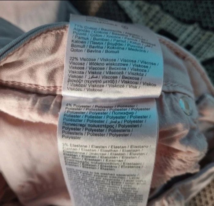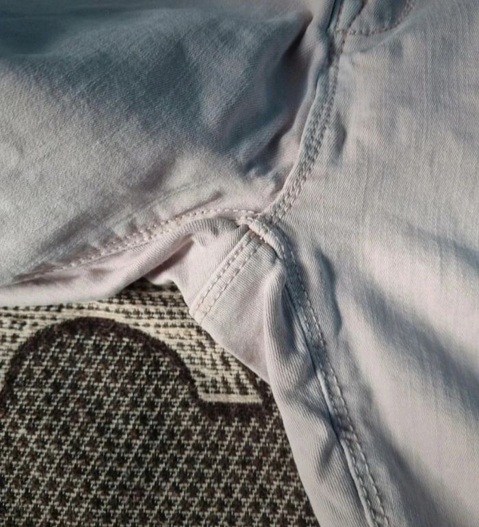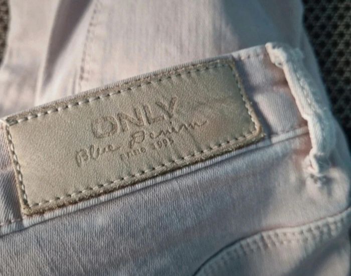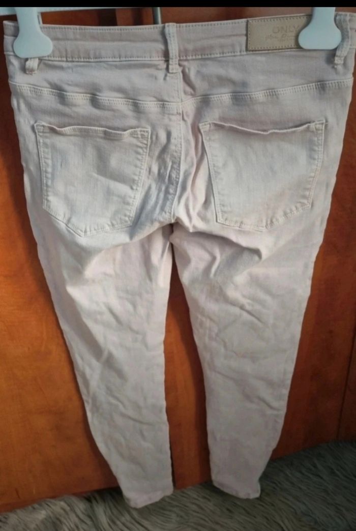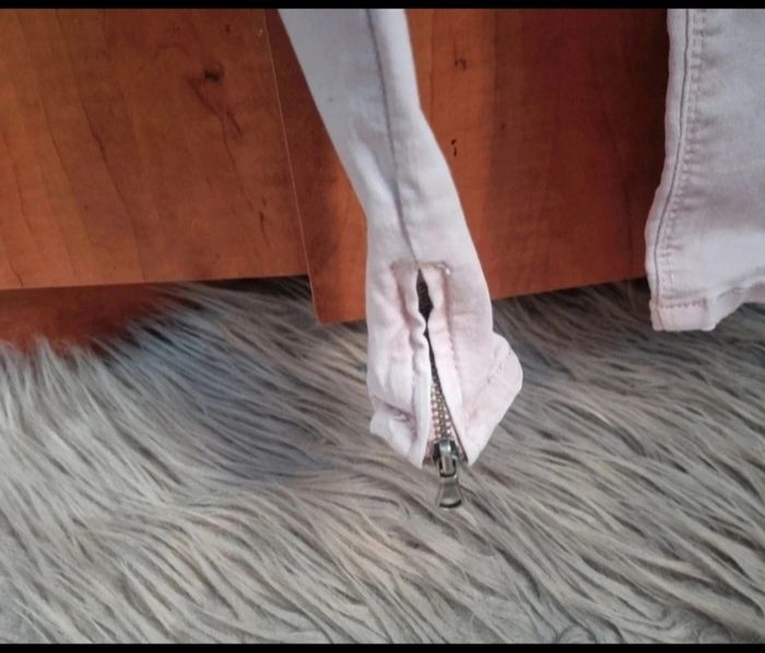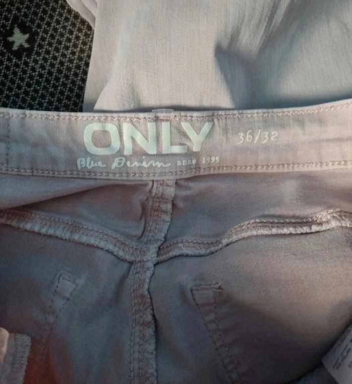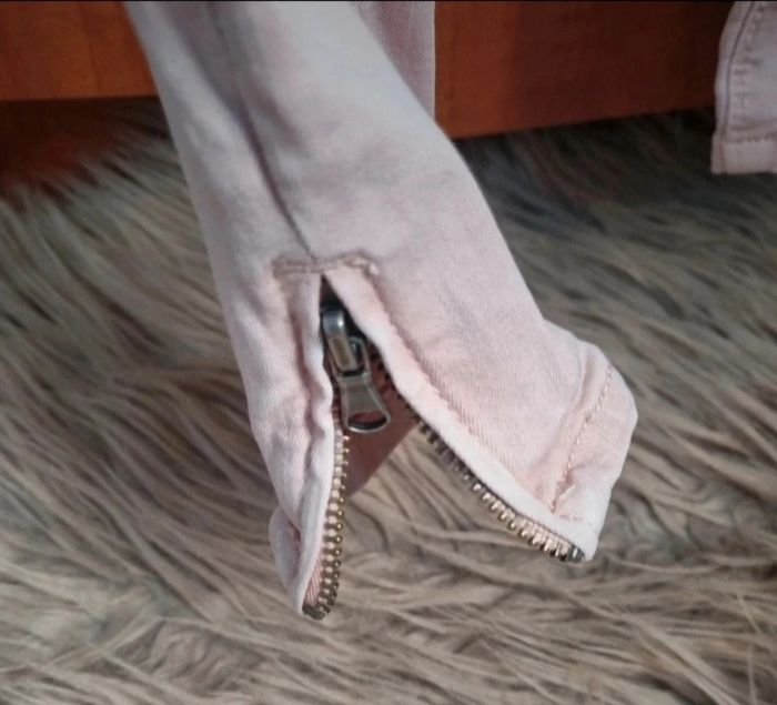 Jean rose pâle avec zip aux chevilles, taille 36 marque Only, longueur 87cm, largeur de la taille 37cm, largeur cuisse 23cm, largeur cheville 10cm,légère tache voir dernière photo.