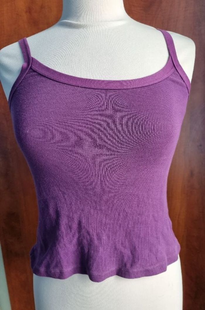 Débardeur violet à bretelles,taille 40 marque Etam, longueur sans bretelles 39cm, largeur 38cm, largeur aisselle à aisselle 37cm,mini taches voir photos.