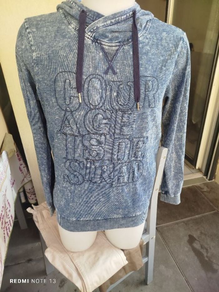 #kytieLhomme. Sweat a capuche taille L léger manches longues de marque Adrexx couture bleu capuche avec cordon en état comme neuf 100% coton mesure des épaules 45 cm des aisselles 54 cm hauteur 75 cm réf L14