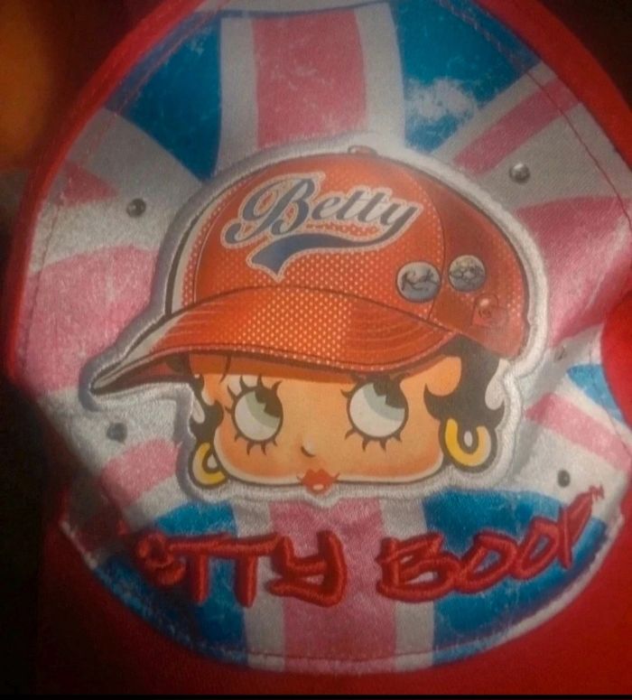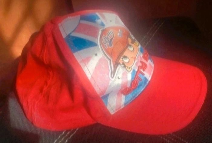 Casquette Betty Boop ,rouge avec drapeau anglais, taille 56,100%coton, neuf.
