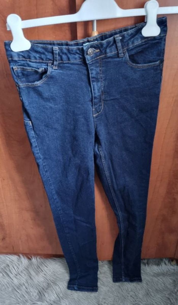 Jeans marine skinny, taille 38 marque Kiabi, longueur 96cm, largeur de la taille 38cm, largeur cuisse 20cm, largeur cheville 12cm.