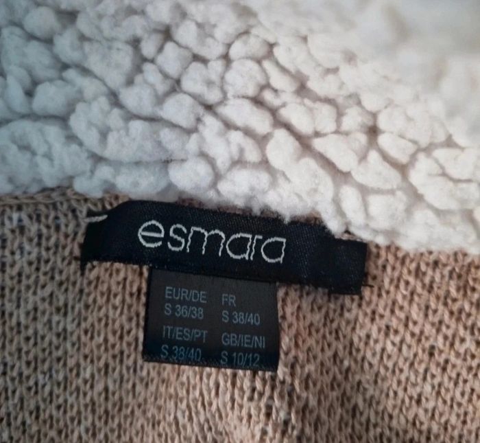 Cardigan avec effet mouton, taille 38-40 marque Esmara, longueur 73cm, largeur 56cm, longueur épaule à aisselle 16cm, largeur aisselle à aisselle 53cm, longueur manche 56cm.