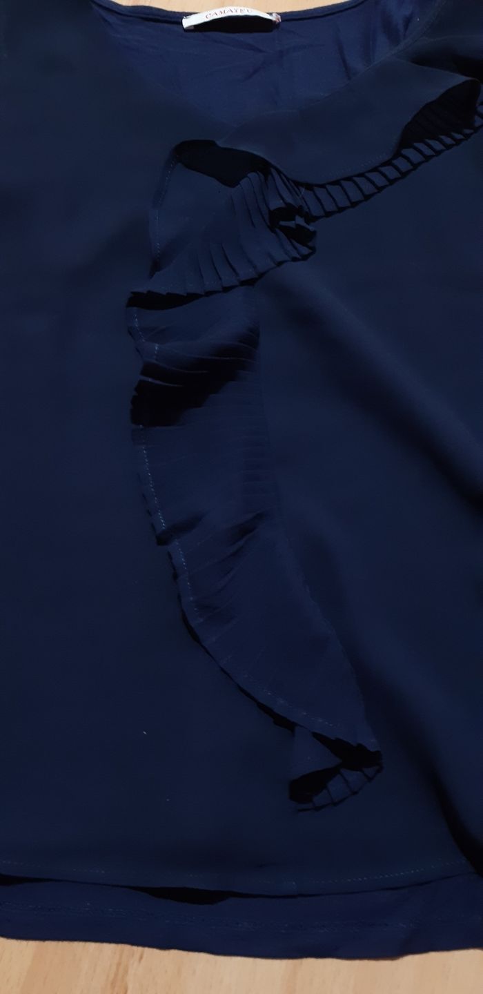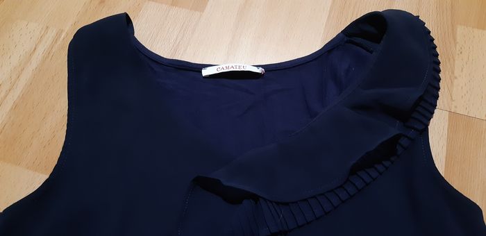 Débardeur femme ou ado Taille S Bleu marine Volant sur le devant Très léger Très bon état Camaieu J'ai d'autres vêtements femme ou ado et enfant ainsi que des jeux donc venez visiter mon dressing. Une réduction est appliquée dès 2 articles achetés