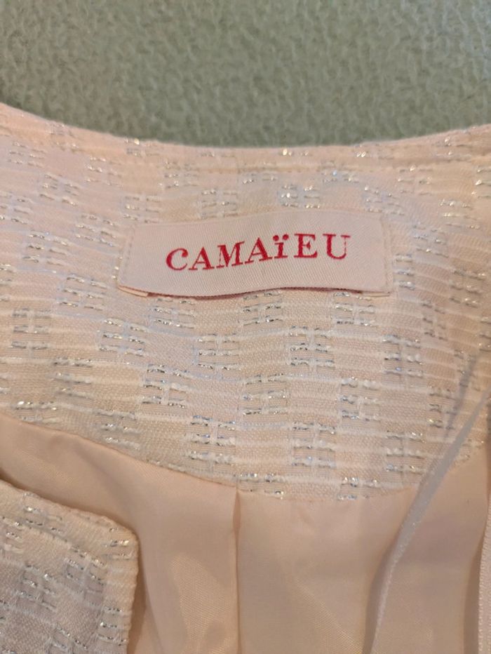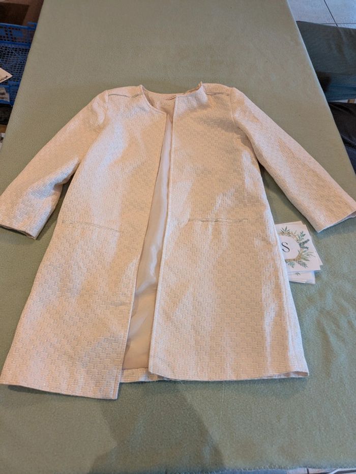 Un blaser long de couleur rose pâle en taille 36 de chez Camaïeu en bon état car une manches est tachée sur le dessous cf photo #nanatytydidi_femme36s