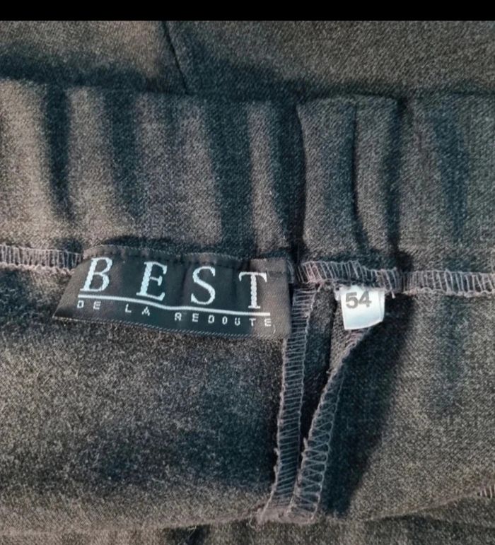 Pantalon Fuseau gris taille 54 vintage, longueur 97cm, largeur de la taille 53cm jusqu'à 56cm, largeur cuisse 34cm, largeur cheville 16cm, bouton et zip sur le côté, agréable à portée et très jolie,marque Best de la redoute,2 poches à l'avant.