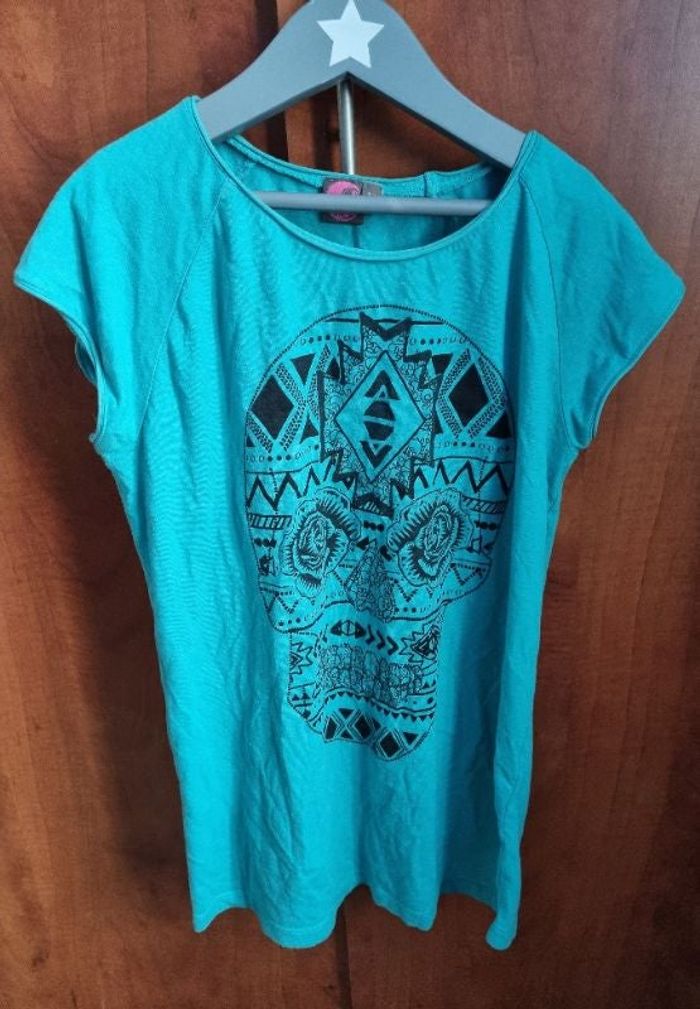 T-shirt bleu turquoise avec tête mexicaine fille taille 14ans marque bilook.
