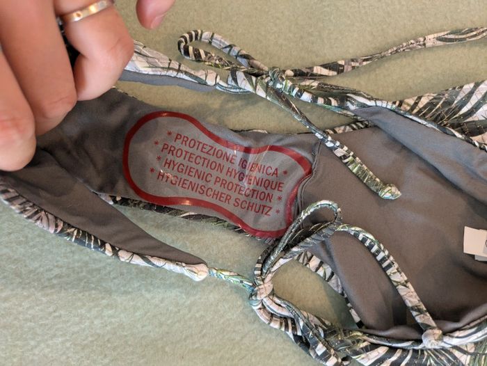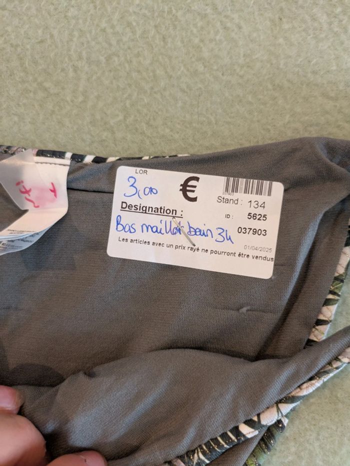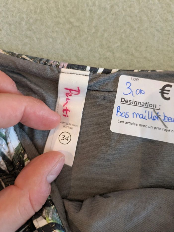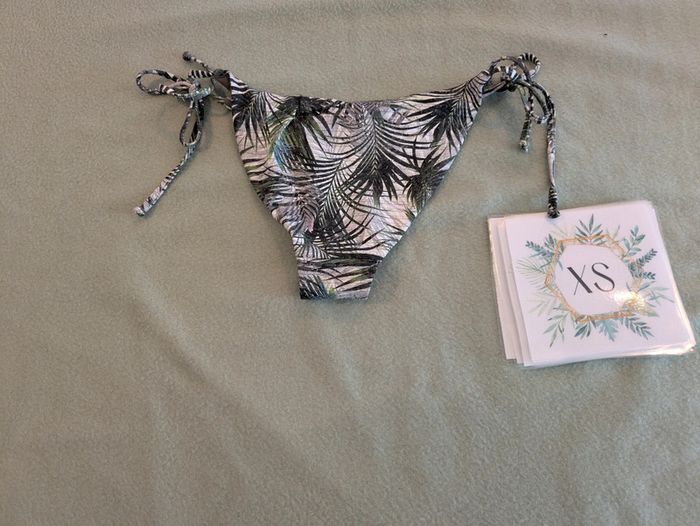 Un bas de maillot de bain ton kaki/blanc avec motif feuille tropical en taille XS neuf jamais porté #nanatytydidi_femme34xs
