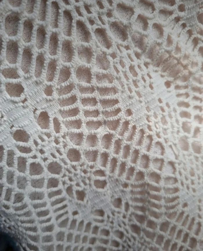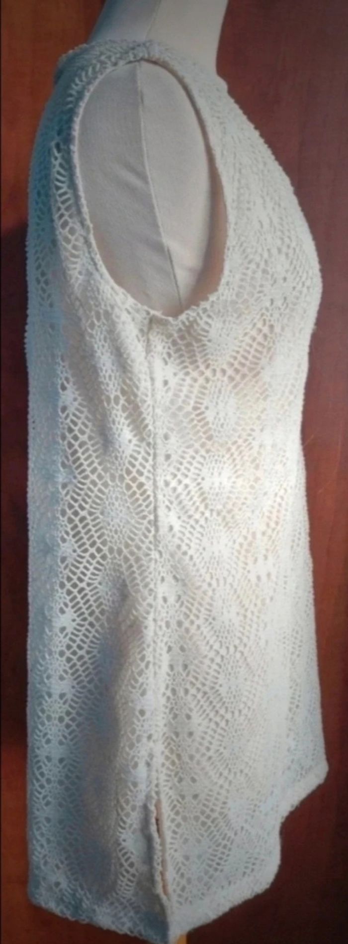 T-shirt effet brodé taille 42,marque Simply The Best,longueur 79cm, largeur 49cm, longueur épaule à aisselle 22cm, largeur aisselle à aisselle 49cm,(couleur crème).