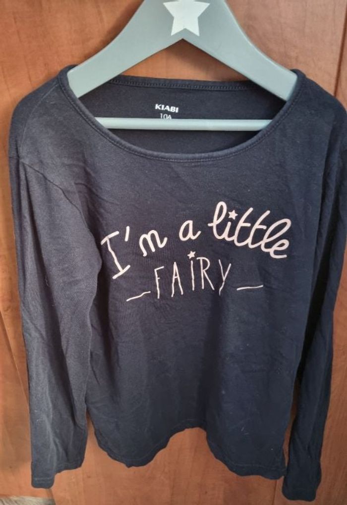 T-shirt à manches longues marine avec écriture rose ( je suis une petite fée),taille 10ans marque Kiabi.