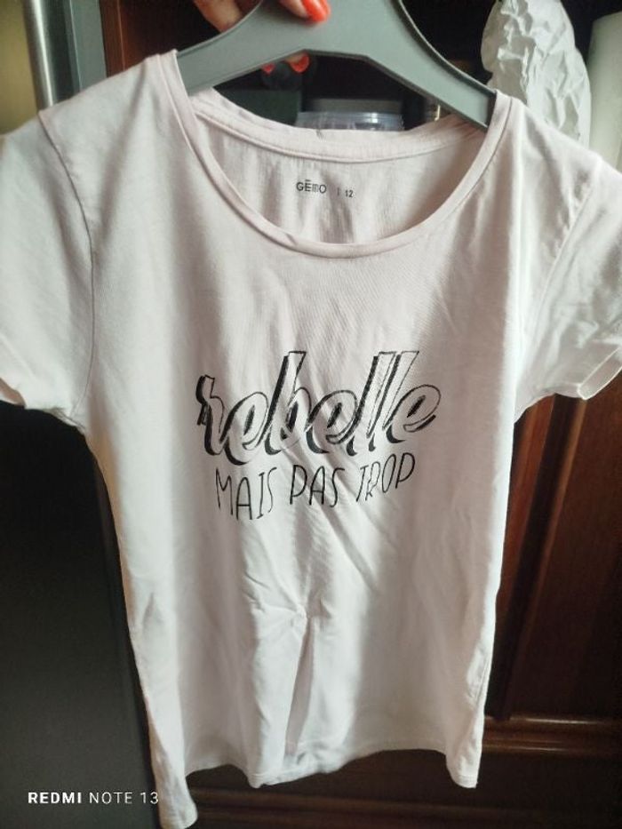 #kytie12ansfille. Tee-shirt manches courtes taille 12 ans de marque Gémo rose pastel très léger en état comme neuf ref T45