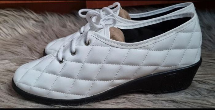 Chaussure compensée blanche,pointure 40,marque Élastomère, hauteur talons 5cm.