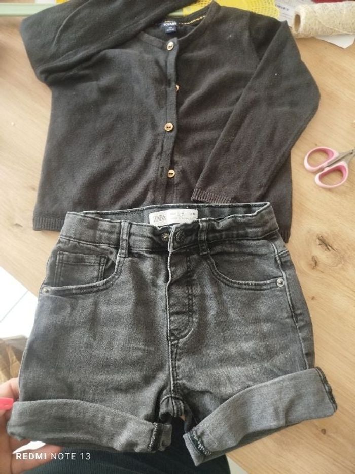#lytie3ansfille. 1 gilet Kiabi et 1 short Zara en excellent état noir ref 410