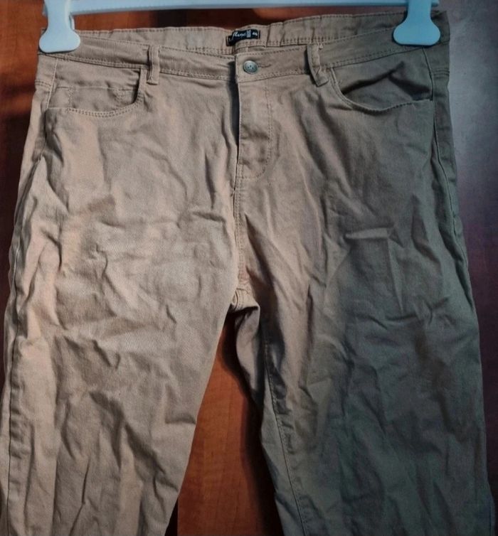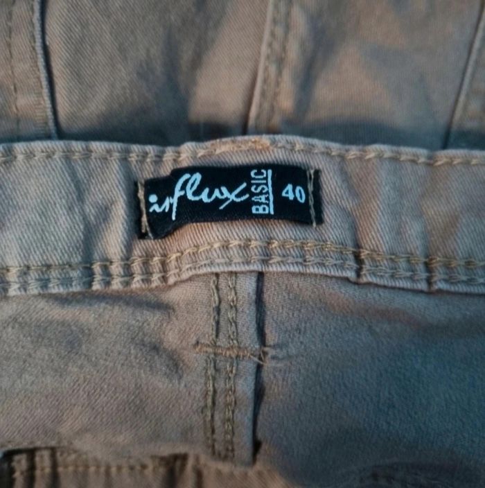 Jean beige, taille 40 marque Influx, longueur 100cm, largeur de la taille 40cm, largeur cuisse 26cm, largeur cheville 17cm.