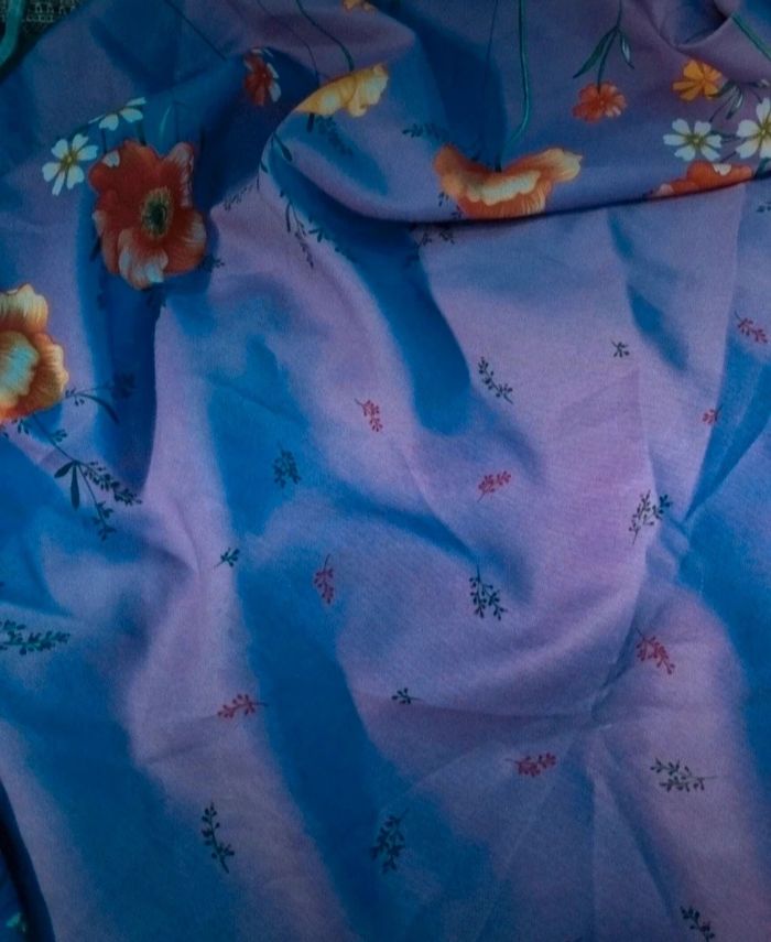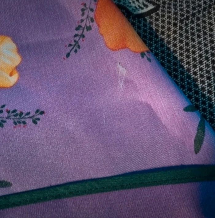 Nappe ronde lila à motifs fleurs antitache,environ 180 ,léger acro voir photo.