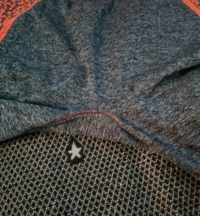 Legging de sport gris et orange fluo taille 38-40, longueur 72cm, largeur de la taille 36cm jusqu'à 40cm,largeur cuisse 23cm, largeur mollet 12cm,très peu porté.