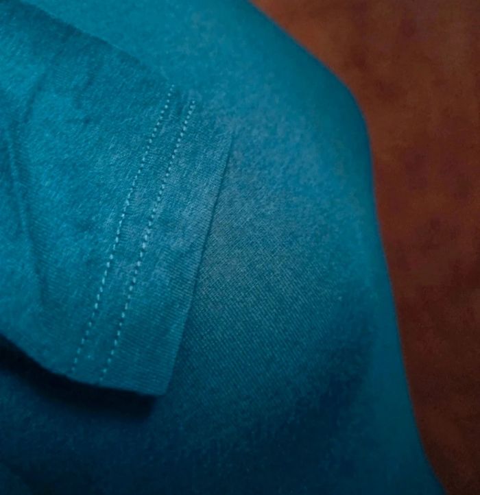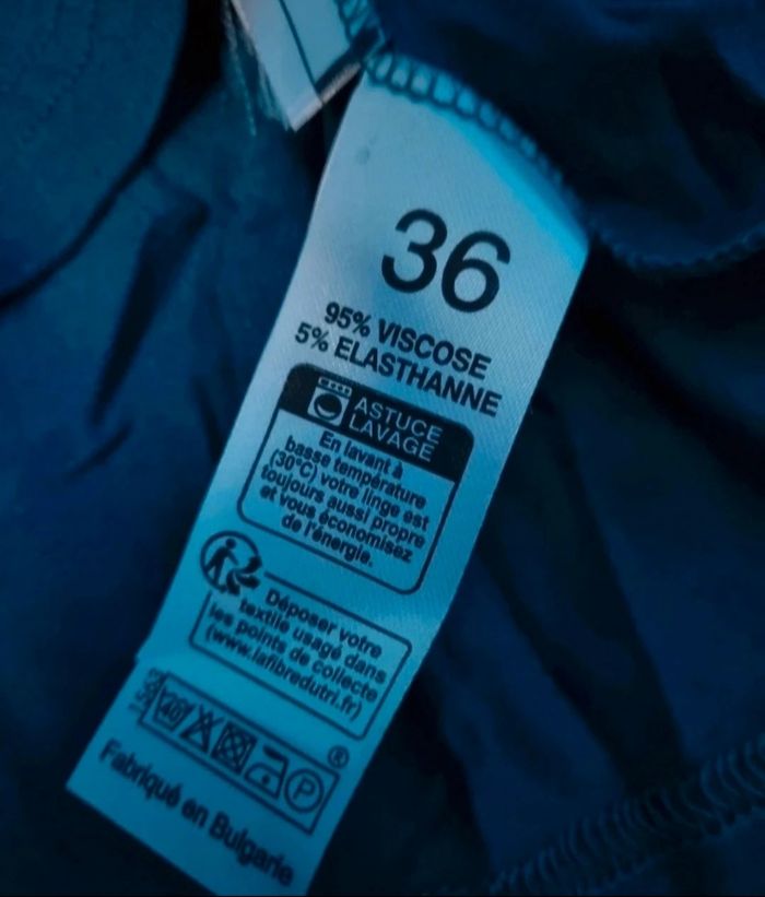 T-shirt à manches longues bleu,taille 36 marque U essentiel, longueur 58cm, largeur 36cm, longueur manche 56cm,longueur épaule à aisselle 18cm.