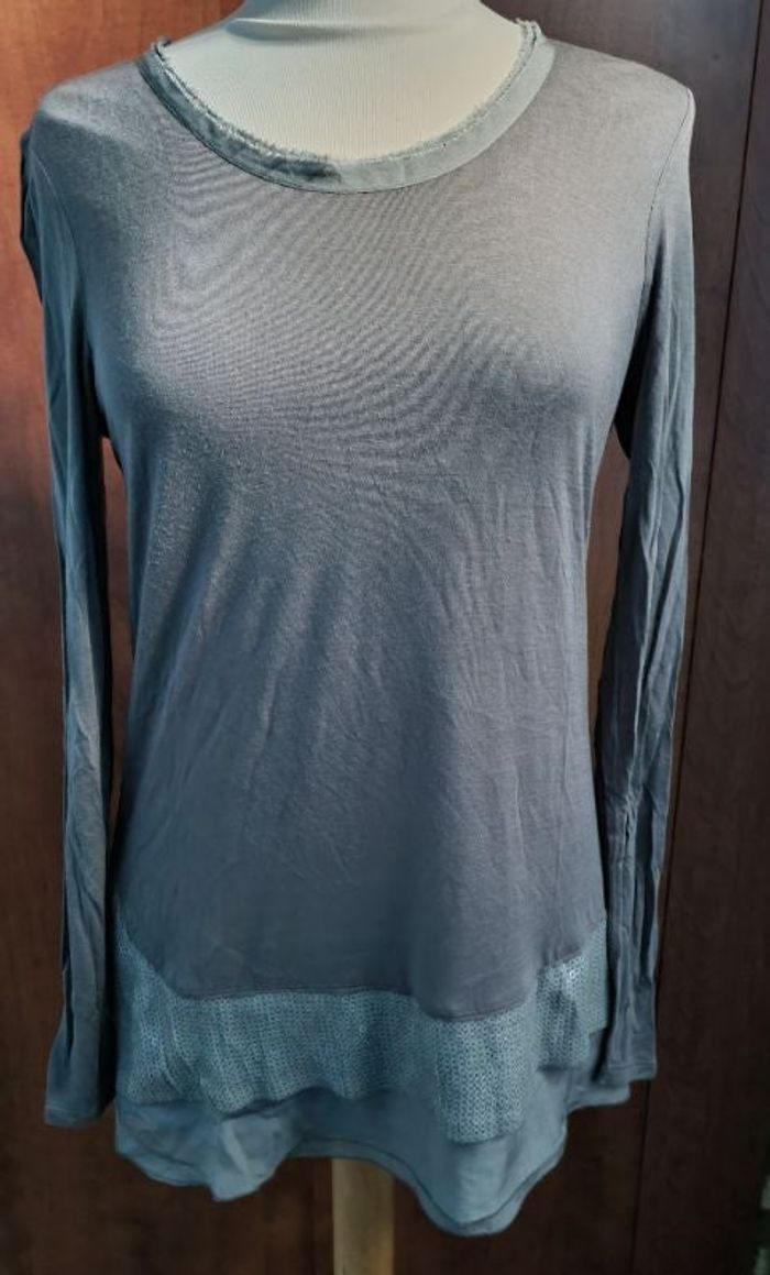 Tunique gris avec sequins, Taille 36 marque Marc Aurel,longueur 71cm, largeur 44cm, longueur épaule à aisselle 23cm, longueur manche 57cm.